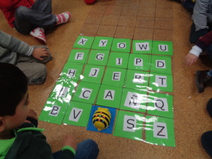 Buscar as letras do nome propio nunha grella con tódalas letras: para os de máis idade buscar as iniciais do nome, ou en momento moito máis avanzados pedir que se faga o percorrido buscando tódalas letras do seu nome en orde.