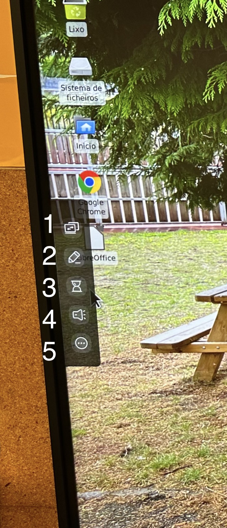Nesa barra flotante contaremos sempre cun botón (1) que nos permite cambiar entre os sistemas, ou escoller calquera outra entrada de vídeo (hdmi por exemplo, co cable que teremos pendurado ao lado do panel)