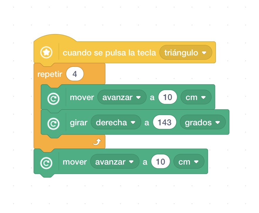 Neste caso o código execútase cando se preme on os botóns «físicos do vincibot» con forma de cadrado, círculo ou triángulo, segundo se indique.